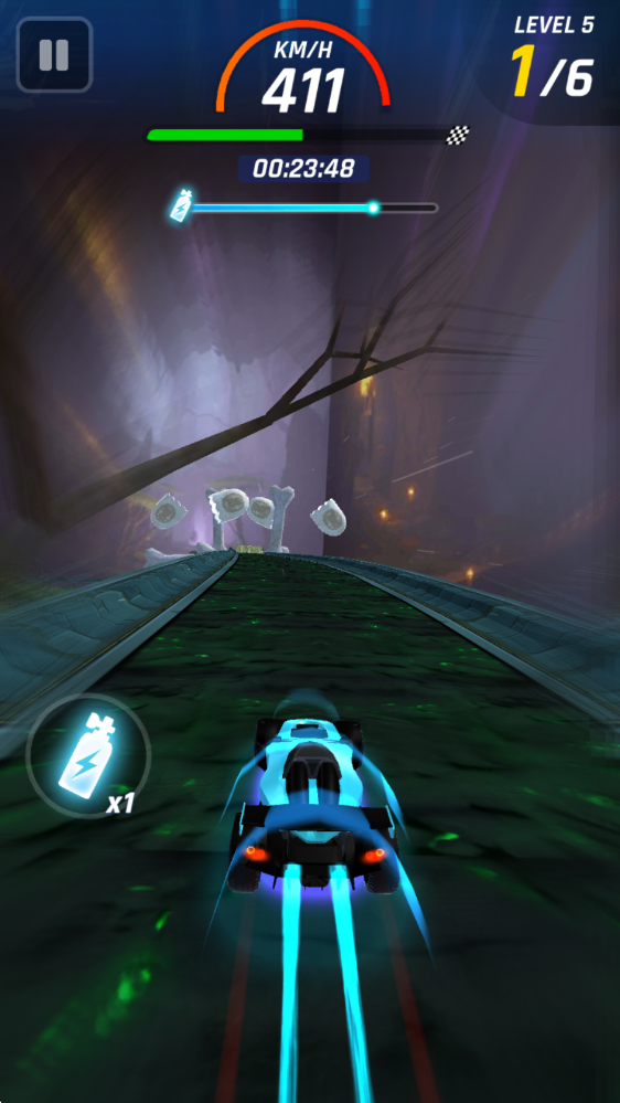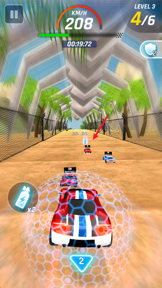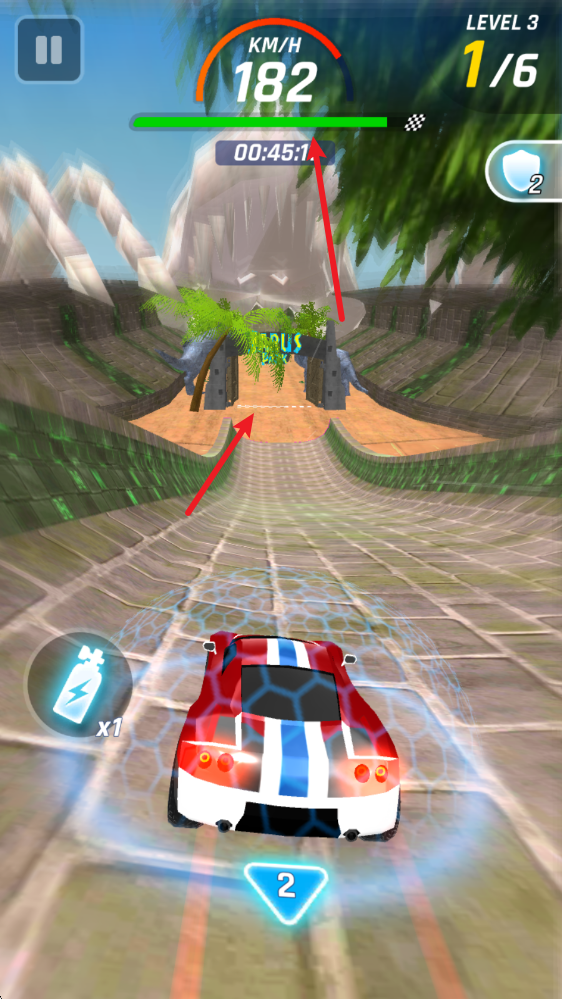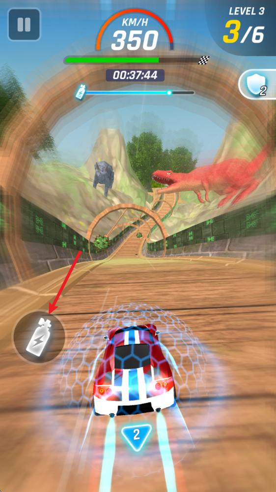 1进入游戏后,轻触屏幕就能让赛车提升速度,通过左右滑动操作可以控制赛车的移动方向。