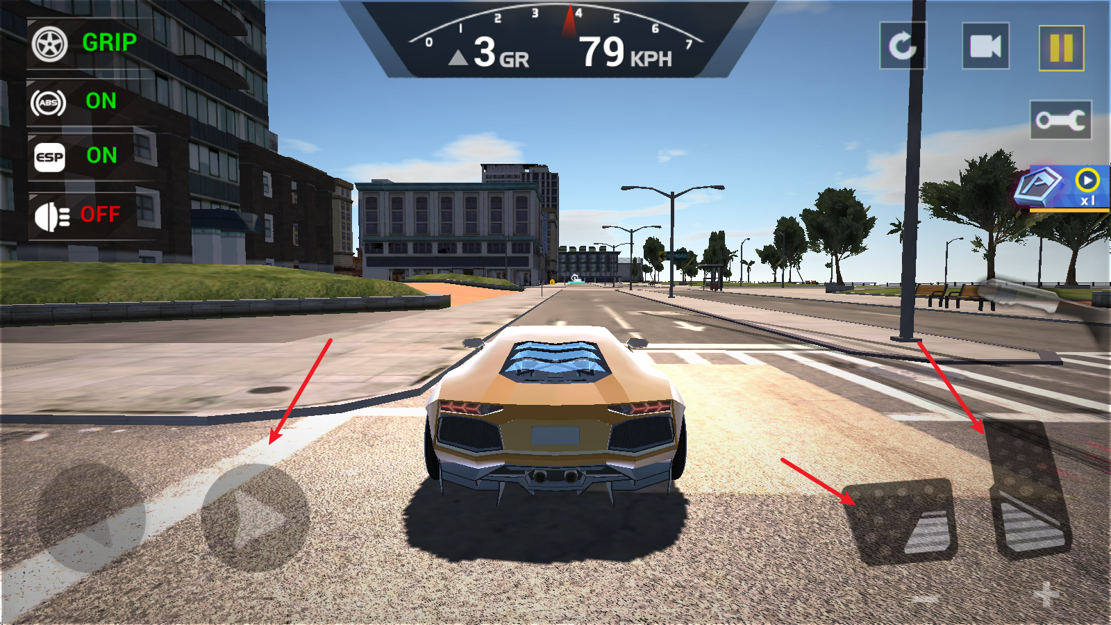 2进入后,左侧方向键用于控制转向,右侧的长踏板负责加速,短踏板则用于刹车。