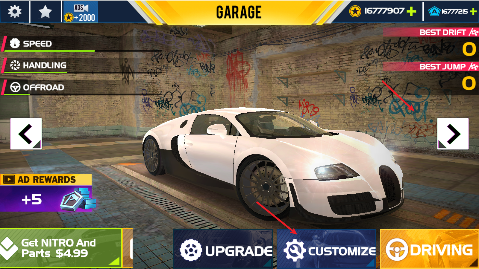 1、在主界面选定车辆后,点击下方的CUSTOMIZE按钮。