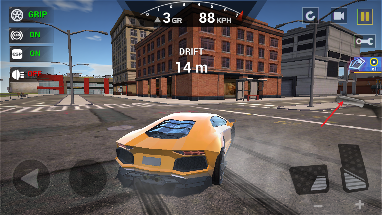 3、右侧还有手刹,转向的时候点击还能使出漂移哦。