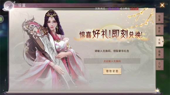 使用方式:进入游戏后点击设置,然后再点击兑换,将礼包码输入兑换框中就可以领取了。