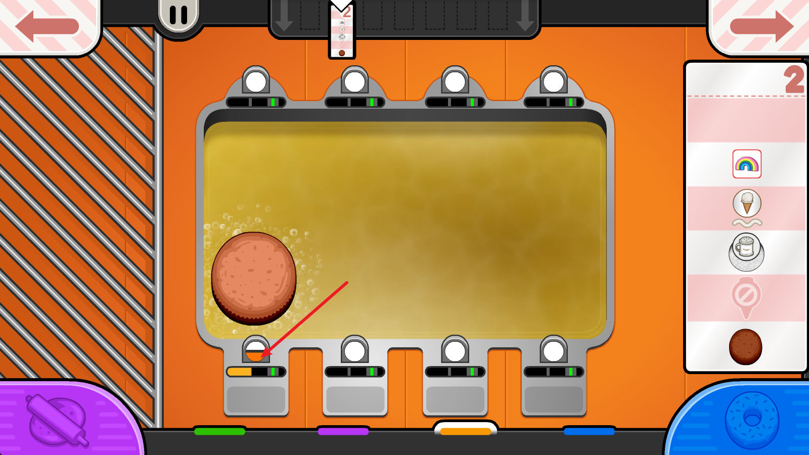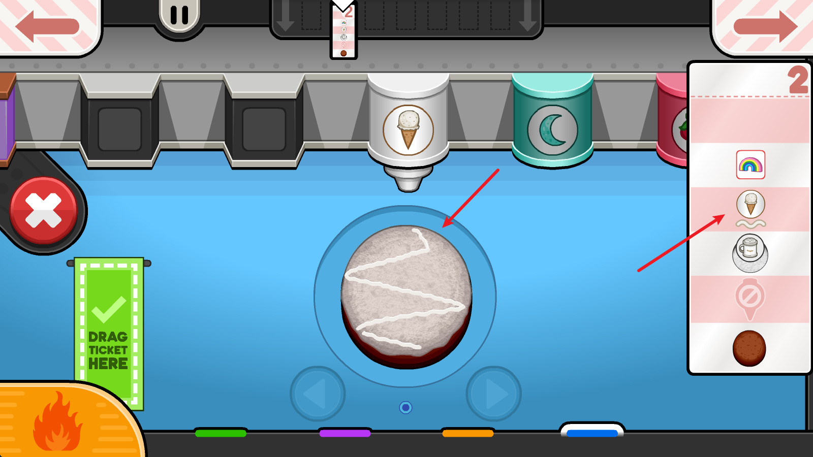 5、随后需要拖动甜甜圈在正确的糖霜中沾一下。