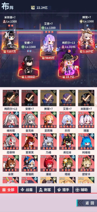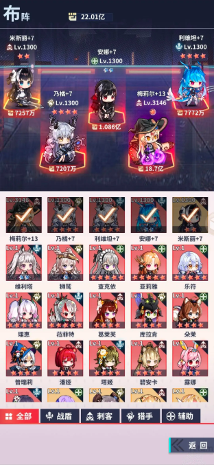2、阵容详解:首先是主C,这里只推荐钦定第一主c葛莱芙以及无限成长英雄梅莉尔 如果你追求的是前期争榜,一直有不错的体验,那么葛莱芙是你唯一的选择,只需要首冲礼包拉满,竞技场基金一买每天到宝库刷新买专属神器,全服第一就是你。说完主c我们接着说其他4个挂件,没错就是挂件,在前期资源不足的时候只能将所有英雄升到700级解锁所有技能后只升一个主c,这就意味着我们必须选择那种哪怕等级不高但技能机制还是有用的那种,要么给主c加攻击暴击或者加伤要么能对敌方造成控制减防的。