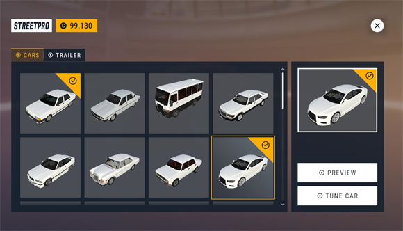 2、进入车库后会看到游戏拥有的车辆,滑动屏幕可以选择车辆。