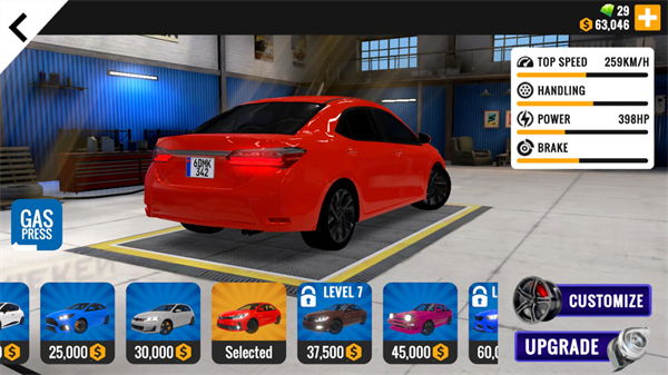 7、在主界面点击GARAGE即可进入车库,在车库中你能够解锁新的车辆,也可以对车辆进行改装与升级。