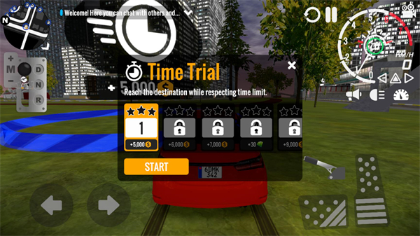 3游戏正式启动后,可通过点击界面左侧区域调整车辆行驶方向;右侧区域用于控制车辆的动力输出与制动操作;若要切换车辆的前进或后退状态,则需点击左侧的档位选择按钮来实现。