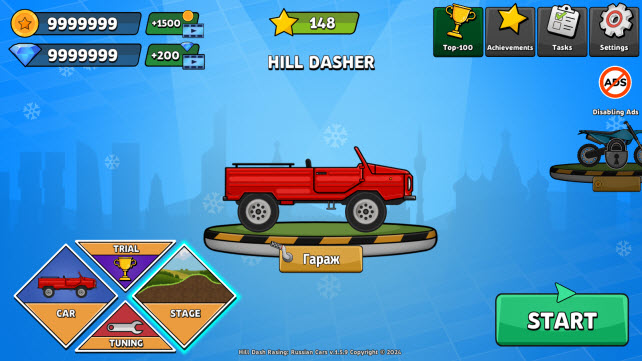 冲刺赛车的玩法和登山赛车颇为相似,玩家得驾驶汽车去完成各类高难度挑战。你的目标很明确,就是驾驶汽车行驶到目标距离,在此过程中不能碰到障碍物。这款游戏操作起来虽说简单,但物理机制的运用很有讲究,因此难度也不小。