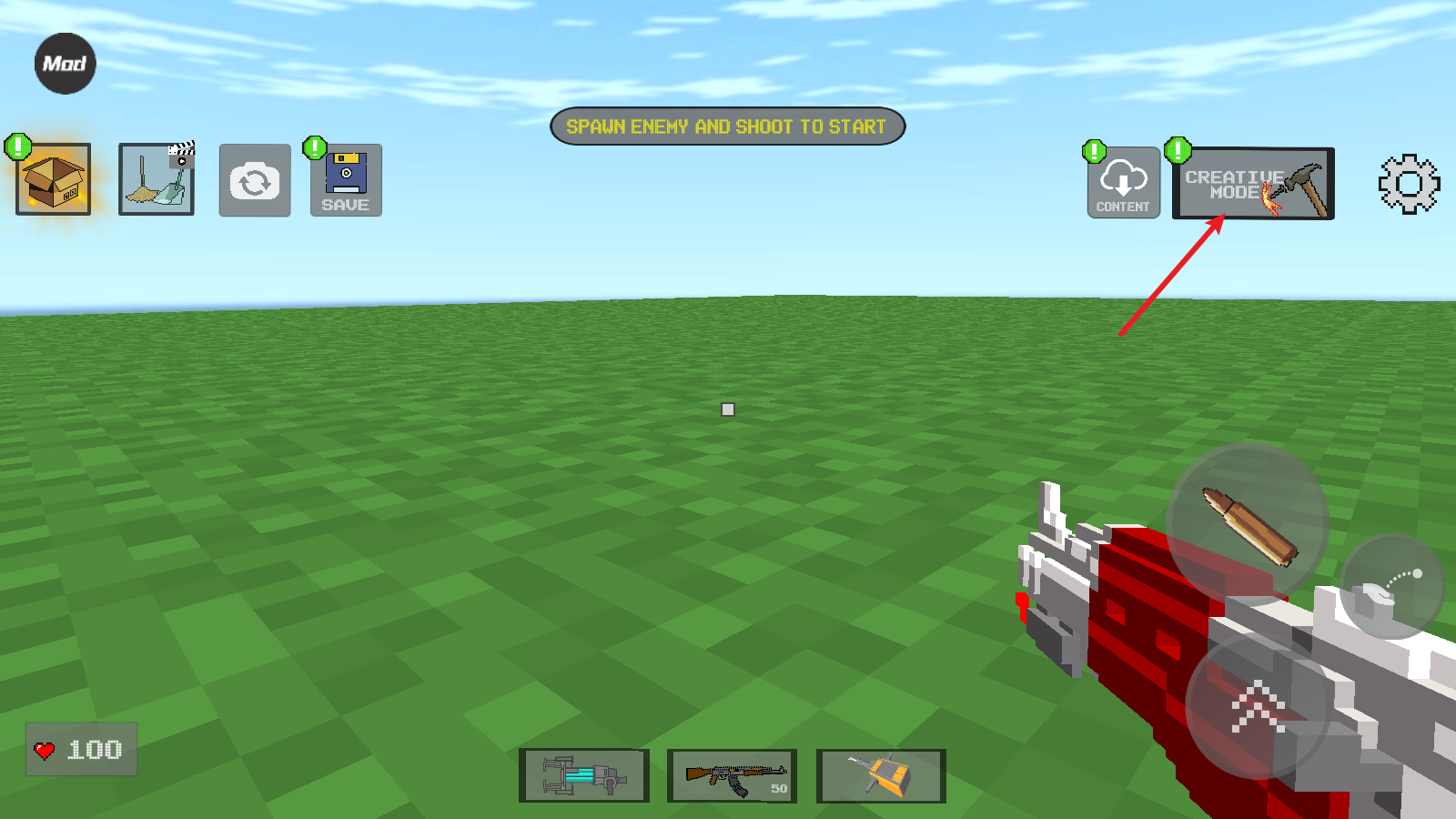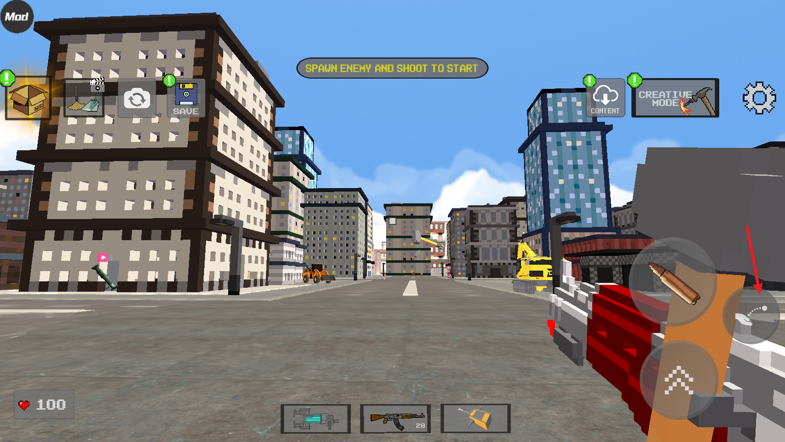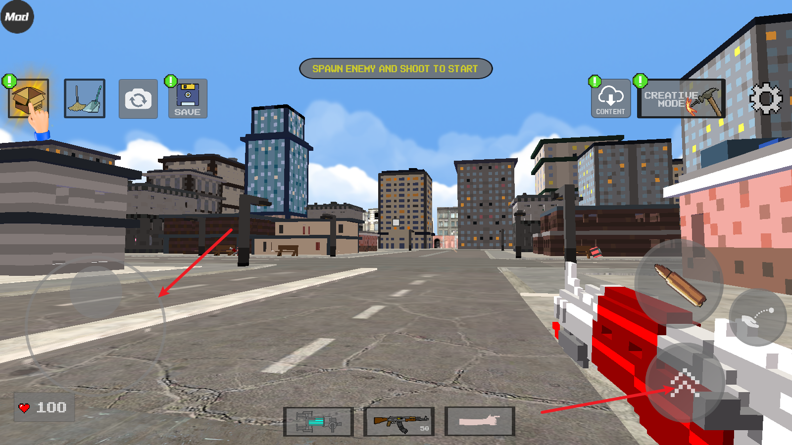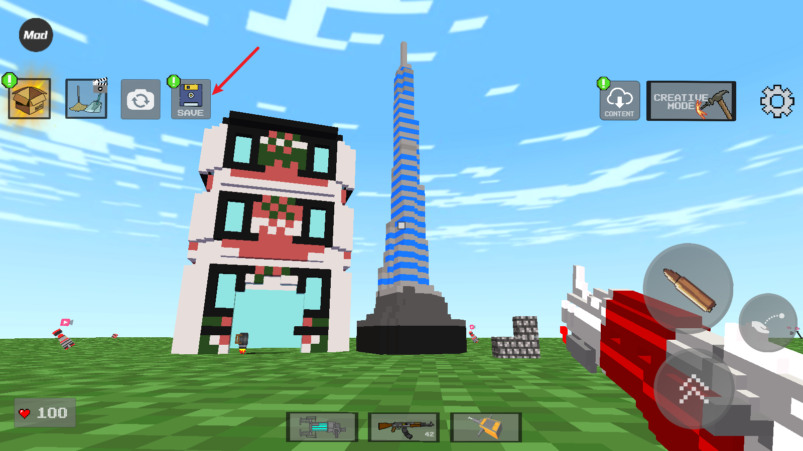3、接下来我们就可以选择不同的方块来建造了,点击子弹图标是放置操作,点击拳头图标则是撤销操作。