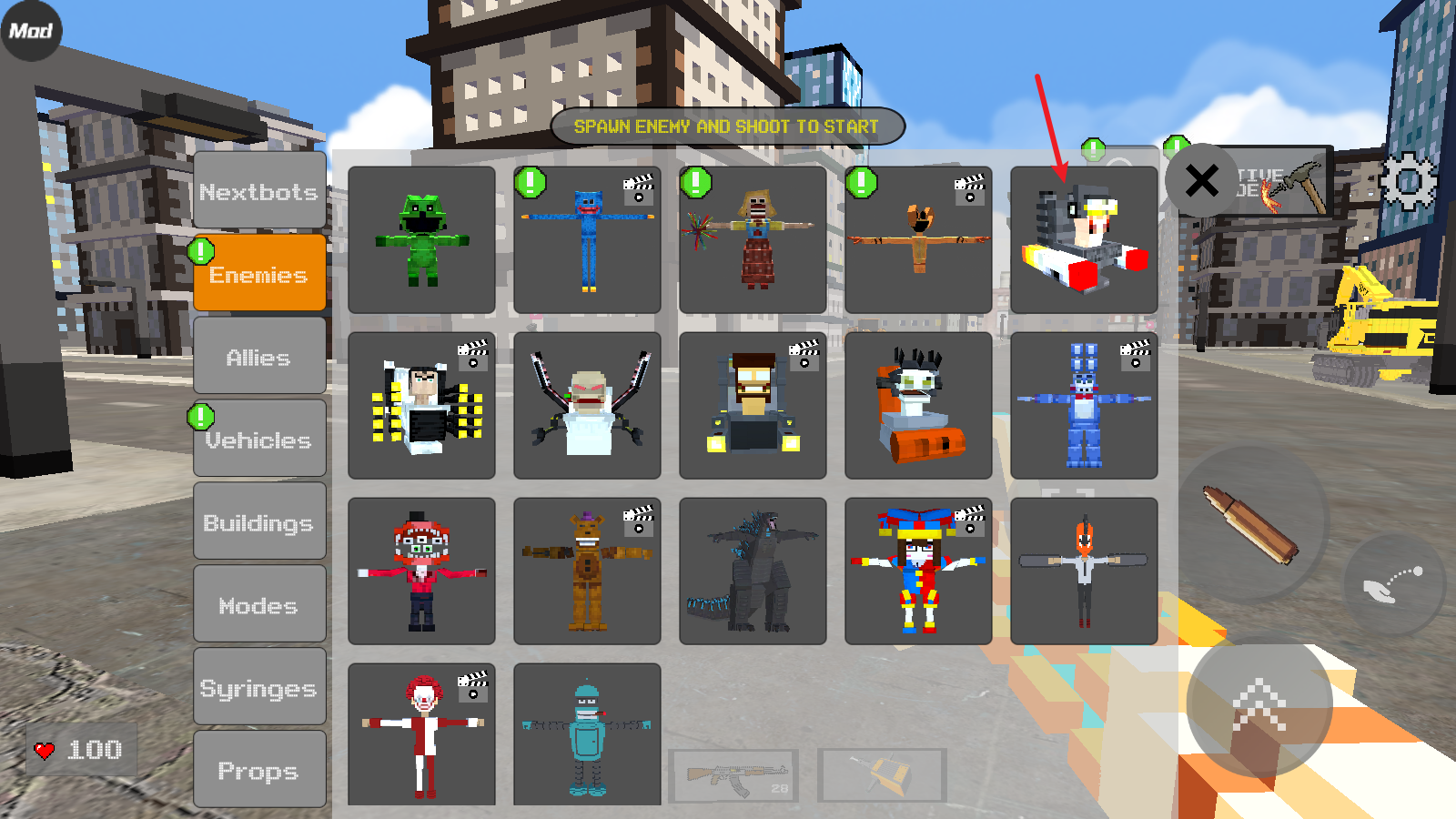 4、射击键旁边的按钮还能够投掷小锤子进行攻击。