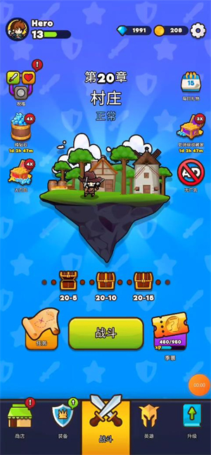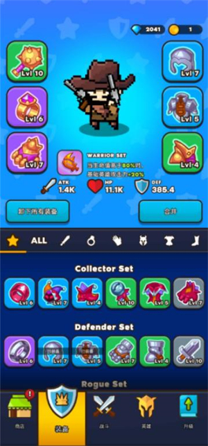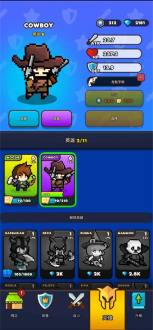 6、当通过第5章后会解锁英雄和装备,点击英雄可以更换你的角色。