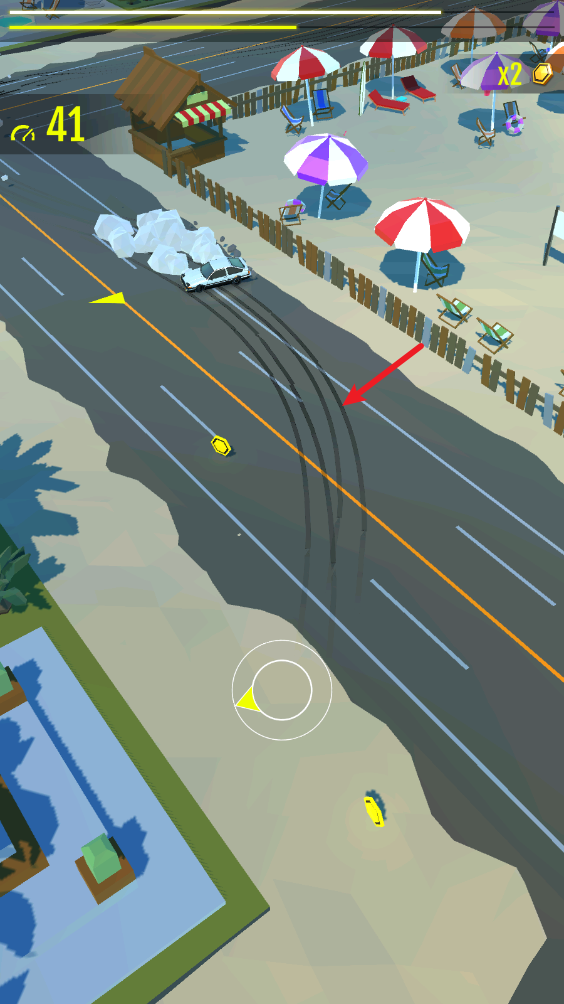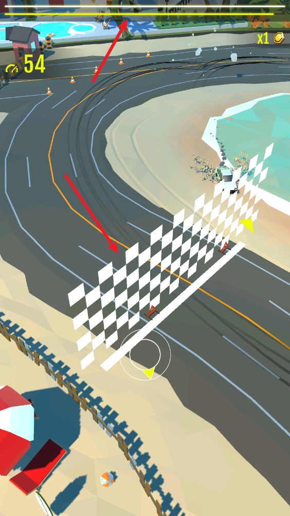2、进入场景后,通过滑动屏幕来控制车辆的方向。