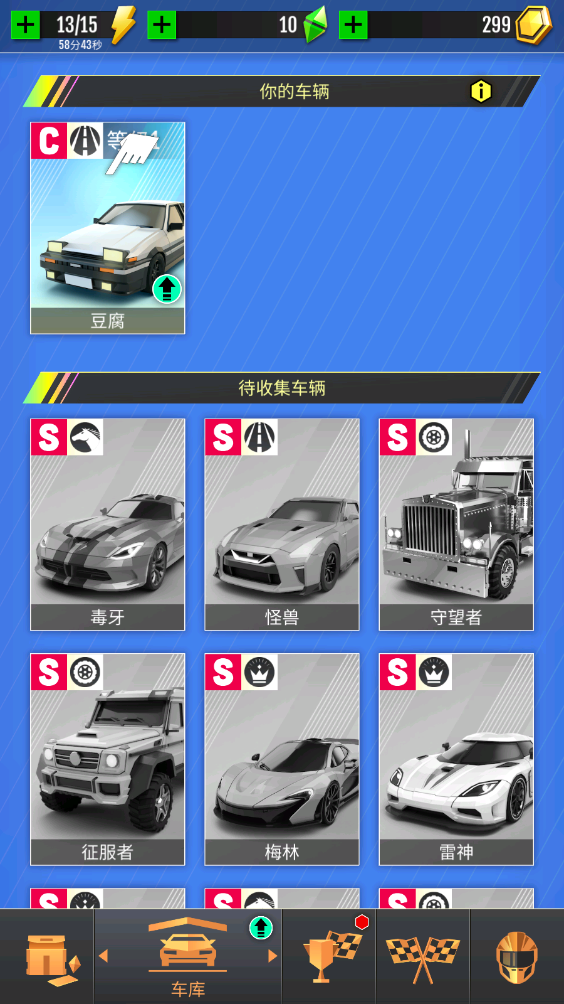 1在游戏里,零件的作用远比想象中关键,与其把钻石一股脑投入抽车,不如合理规划:强势车型可以抽到ss品质,普通限定车有一辆就够了。新手和低氪玩家资源有限,不必硬攒钻石冲击sss车(土豪玩家可随意),优先确保各类型可用车辆齐全更重要。