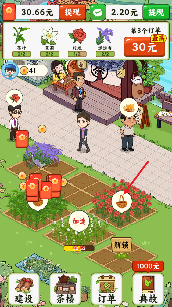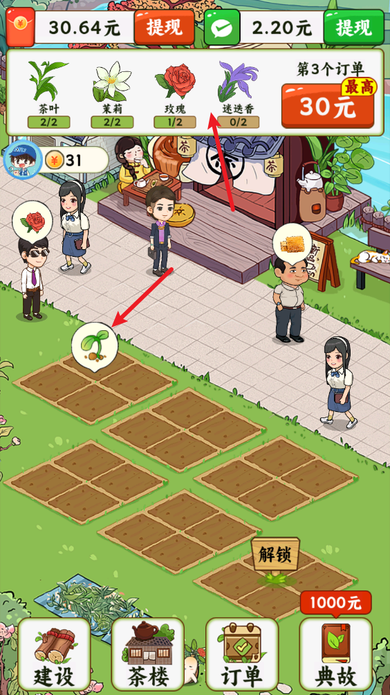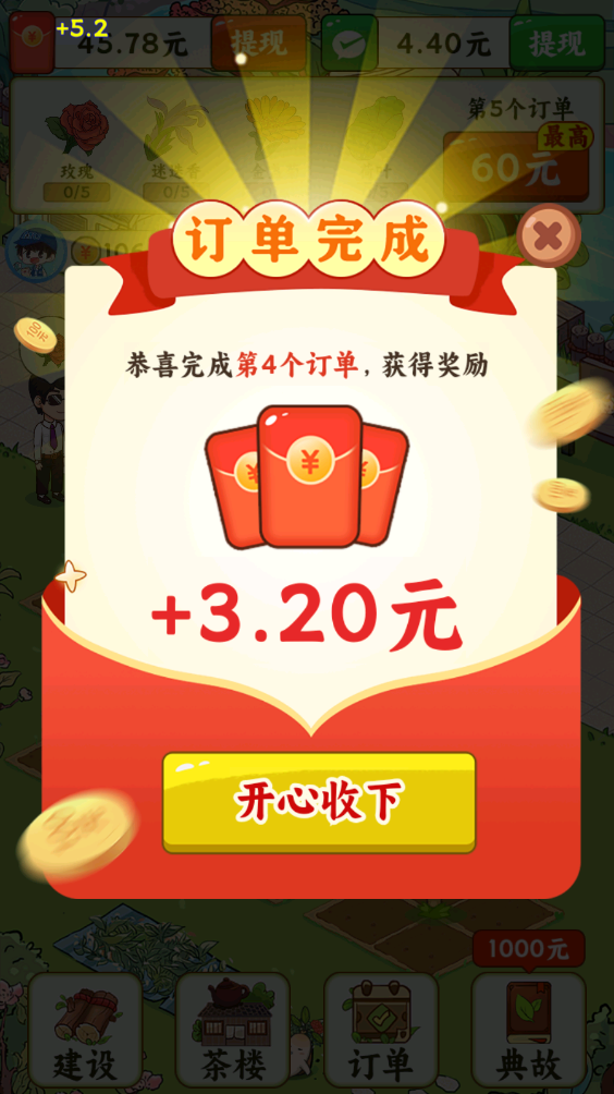 2、游戏中的每一笔订单都有着各种不同的植物和茶叶,让你能够轻松体验田园种植的乐趣,享受丰收的快乐。