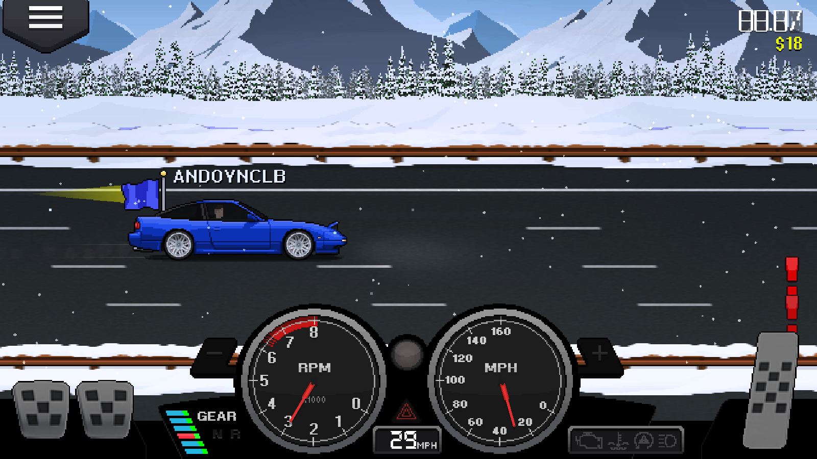 像素赛车手,英文的全名叫做Pixel Car Racer,是一款2D像素风格的赛车竞速类游戏。游戏虽然采用的时简单朴素的像素风,但是玩法上确是丰富多彩的,有着上千种不同的零件和汽车装备可供你使用,让你可以自由的去组装属于自己的专属赛车,在赛场上尽情的驰骋!不仅如此,玩家还能够自由的挑选各种场景进行挑战,雨天、下雪、樱花等各种情景都能去赛车,让你享受丰富多彩的赛车乐趣!