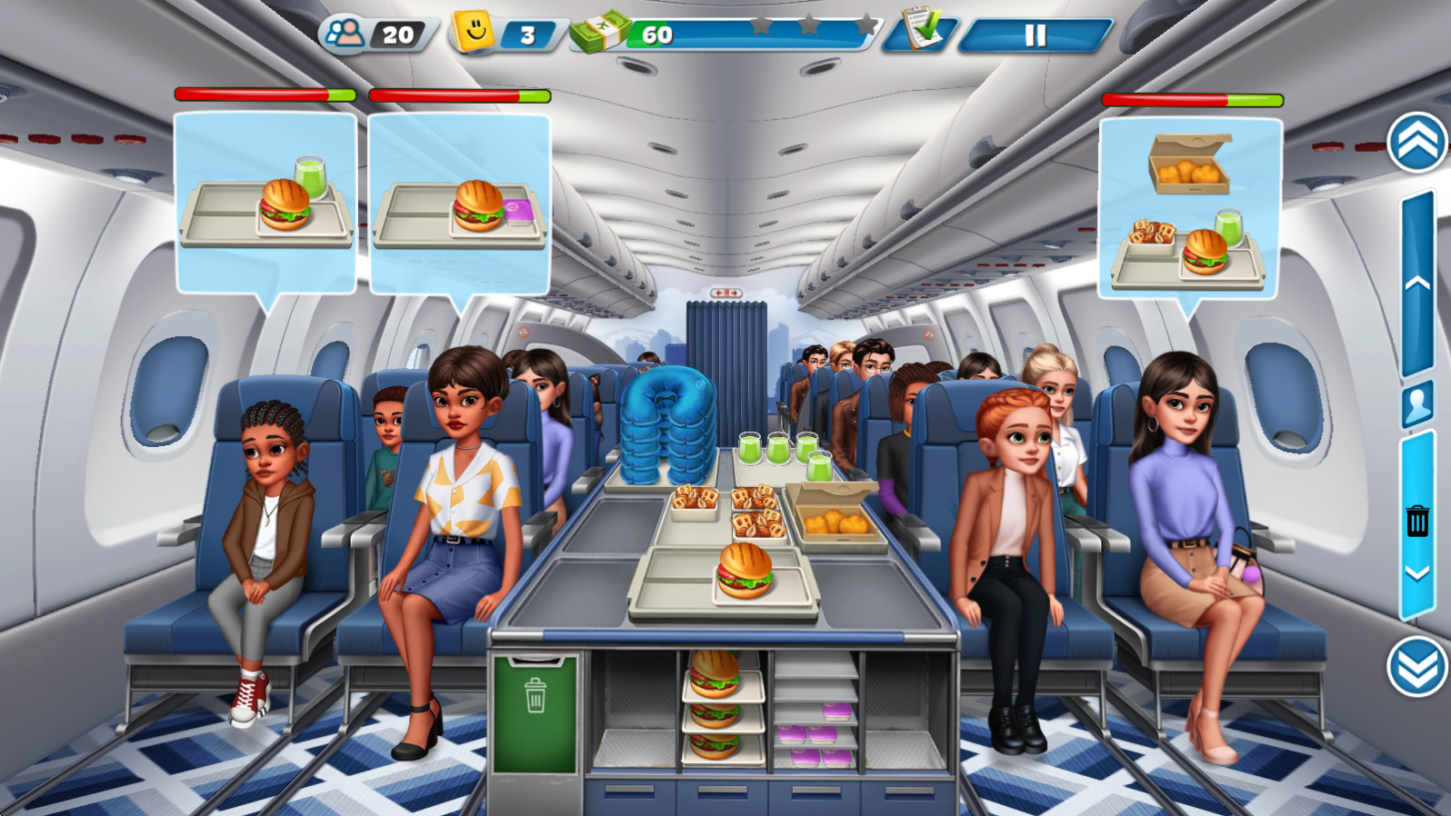 《飞机大厨》国际服正版(Airplane Chefs)是一款火遍全球的烹饪模拟经营游戏,凭借独特的背景设定与耐玩的趣味玩法,收获了众多玩家的喜爱!游戏里,玩家将跟随航班飞往世界各地,核心任务是在飞机上为乘客提供贴心的美食服务——通过精准的时间规划,在限定时间内备好餐食,让每位乘客都能享受到美味的食物和宾至如归的体验,这样就能赚取更多金币!而金币可以帮我们逐步解锁更多城市,学习制作更多种类的美食!