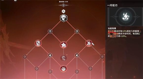 5、天赋配置选择居合斩流、雷霆神威、一闪狂刃、雷咒、狂戮雷鸣、破灭之终结、一闪锐击、追击风袭、暴斩、战斗意识、敌影蔑视、雷反、拔刀真空波、刃风界域、居合天授、雷印亲和。