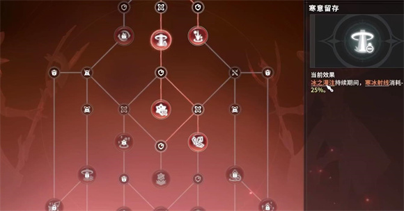 5、天赋配置选择冰晶共鸣、浪潮精通、冰棱之约、琉璃浩瀚、速冻爆破、寒风凝聚、冰光共鸣、寒冰灵域、涓流连绵、冰息宁静、冰箭狂潮、冰晶扩充、冰冷脉冲。射线流输出能力强,但是能量消耗大,天赋加点可以多选择些回能的效果。主要依靠寒冰射线为主要输出,天赋上可以多选择一些增幅类的效果,增加输出能力。