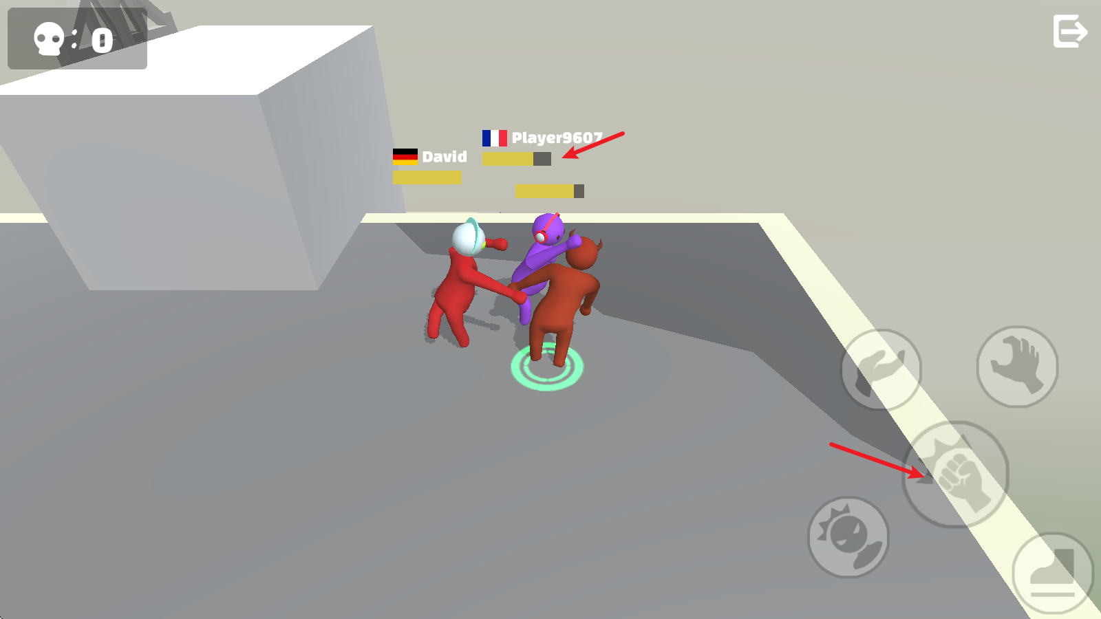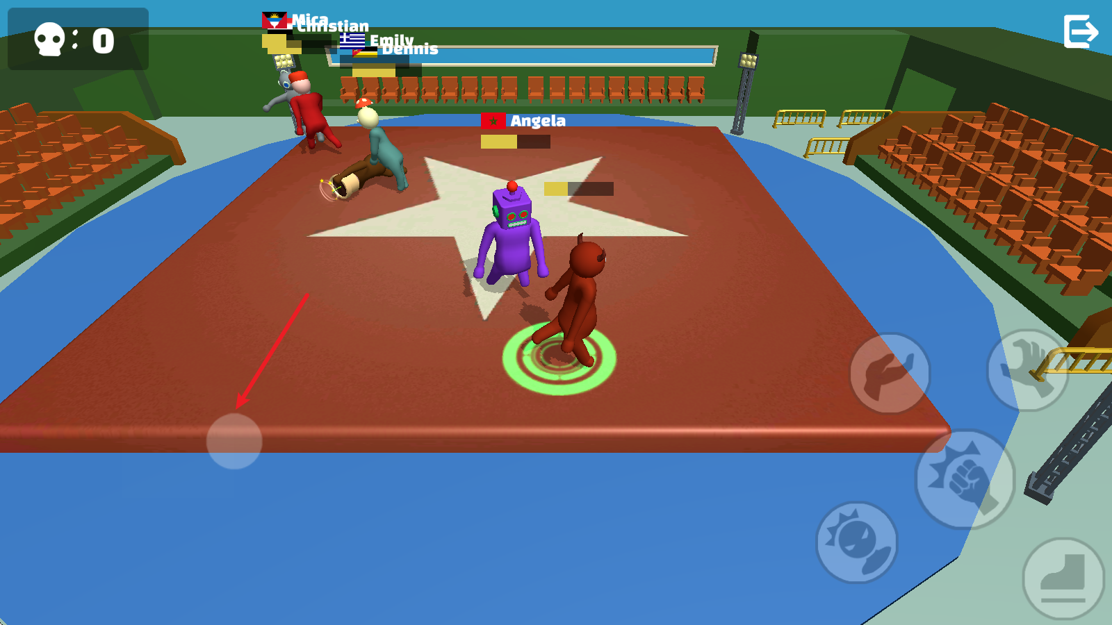 2、我们可以使用拳头去攻击对手,降低头上的黄条。