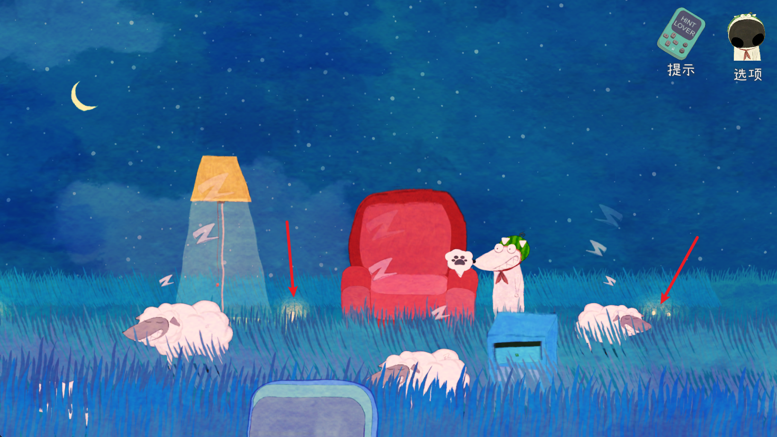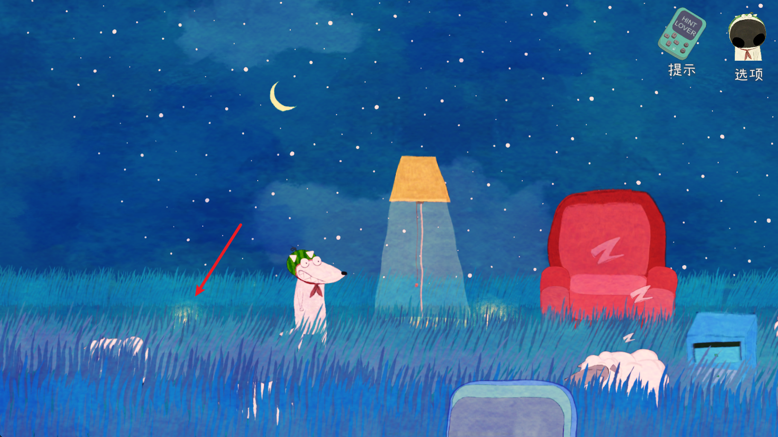 7接下来取过瓶子,寻得三个有萤火虫的地方,把它们放进瓶里,这三个地方的分布如图所示,要留意中间那只萤火虫得挪开沙发才能瞧见。