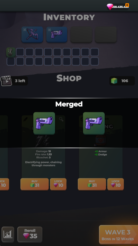 3、游戏里也能通过购买相同武器来合成,持续提升武器的威力,助力你更迅速地消灭怪物。