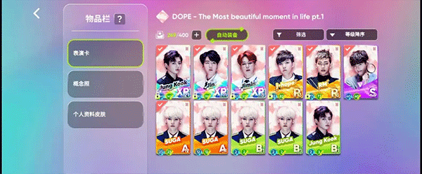 3游戏进程到了中间偏后阶段,稀有度更高的卡片组合或顶级稀有卡能明显提升分数,卡片品质越好,提升分数的过程就越轻松,排名竞争也不用太费力。作为一个花费不多的普通玩家,我不太了解那些顶尖玩家的情况,只遇到过一位等级很高的玩家,在相关榜单里她的头像颜色很醒目,而且在特定活动的第一周就集齐了所有限定道具。虽然她拥有很多高稀有度卡片,刷分应该很轻松,但在分数排行榜上却没看到她的名字,可能集齐卡片和限定道具对她来说就够了。