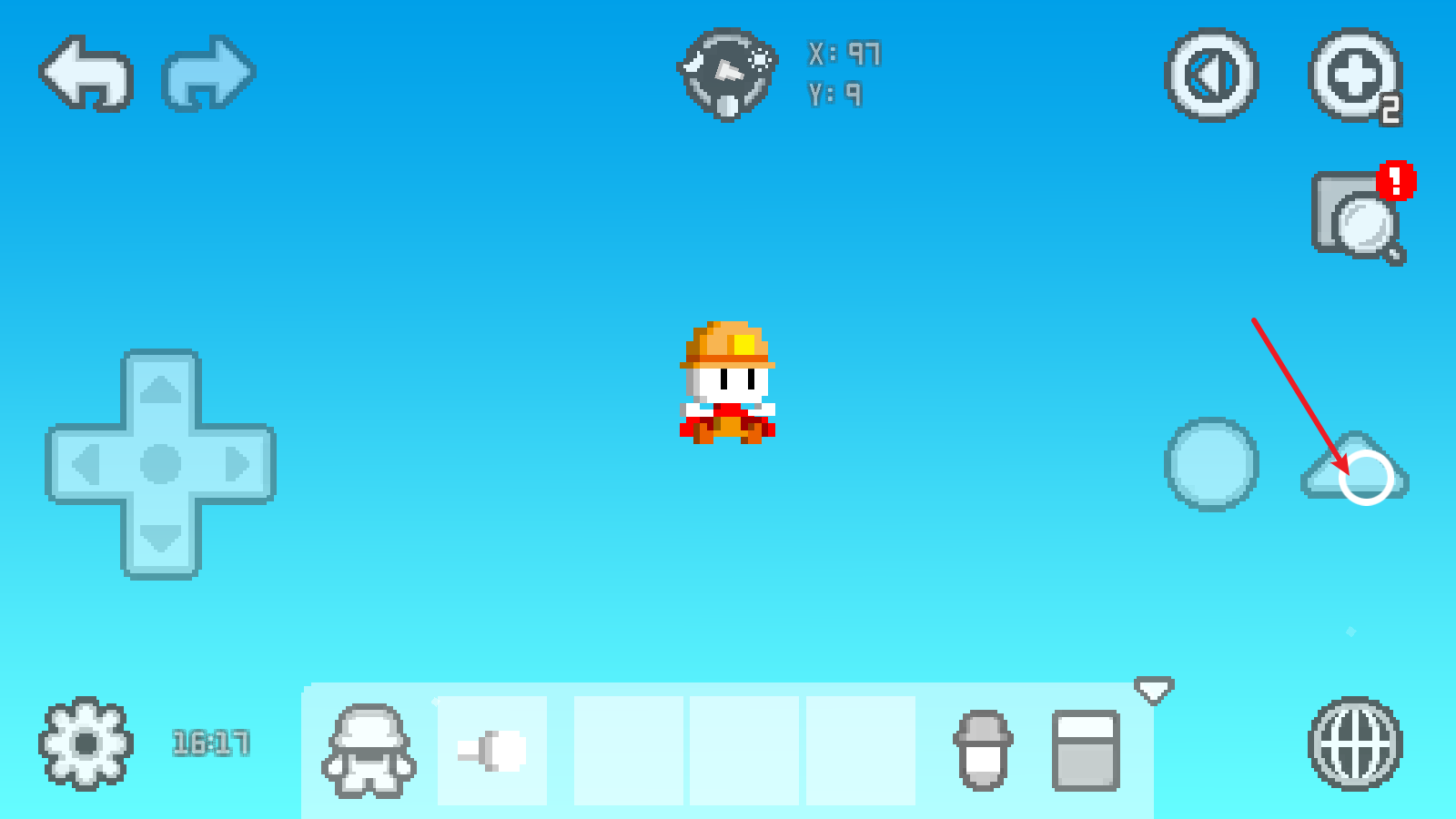 4点击界面右侧的三角形图标就能实现跳跃操作,连续点击该图标还可触发飞行功能。