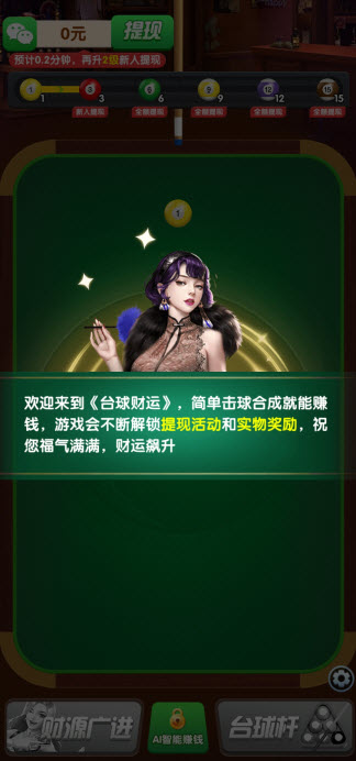 1、启动游戏后,支持直接用wx账号登录。在游戏里,玩家需要通过击球的方式,让台球合成出数字更大的台球。