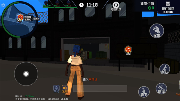 4游戏正式启动后,玩家可通过左侧操作区域操控角色的移动方向,右侧区域则对应跳跃、翻滚与下蹲动作;点击界面上的轮盘装置,还能完成武器的切换装配以及随身道具的使用。