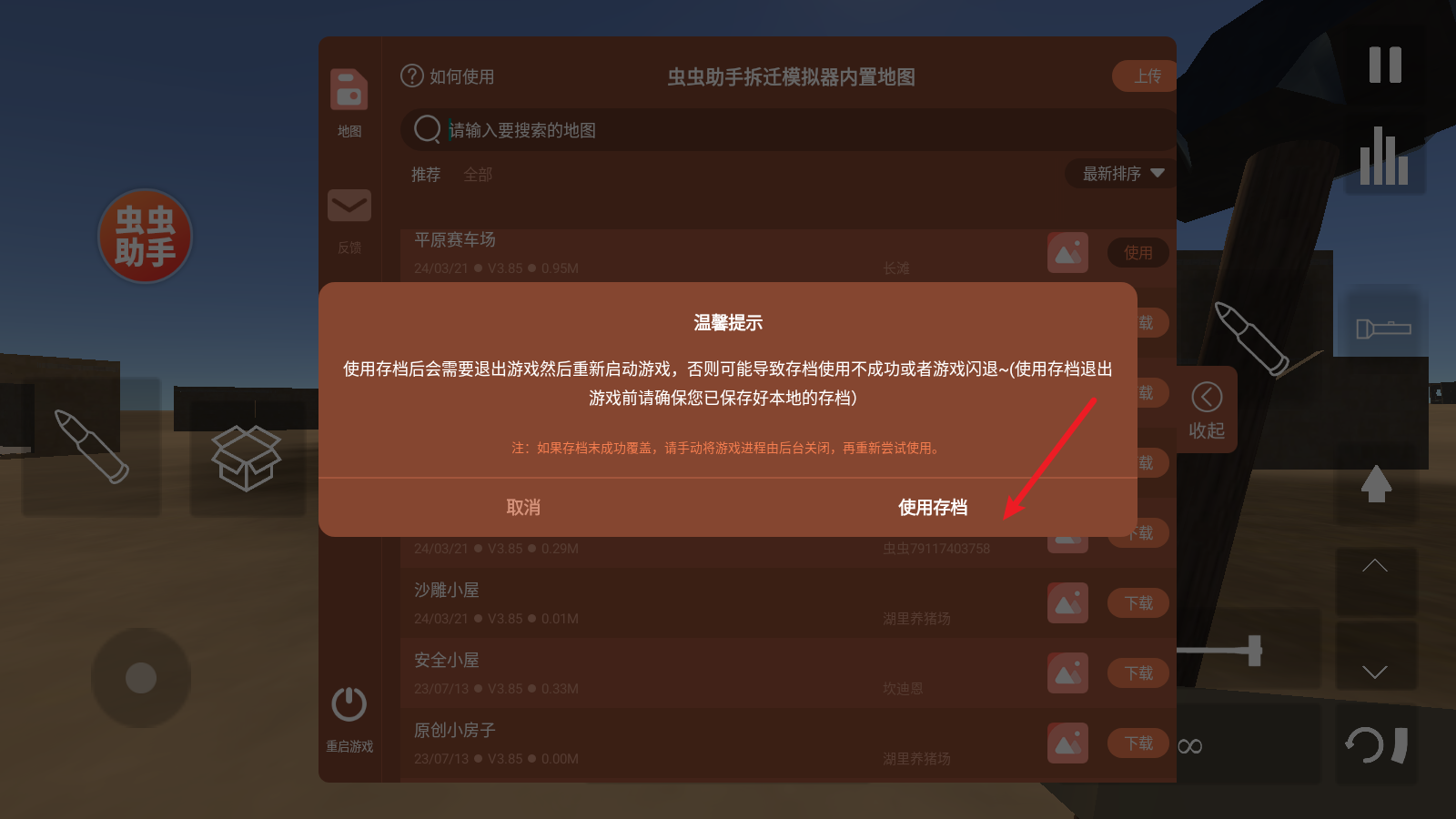 3、好之后根据提示点击使用存档,然后重启游戏。