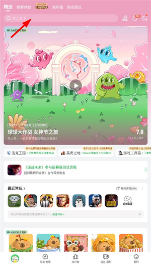 1、第一种是直接在界面点击搜索栏,然后输入你想要找的游戏名字就可以了。