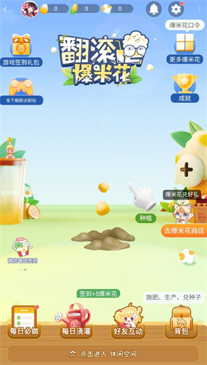 2、第一种是游玩翻滚吧爆米花来获得,通关种植玉米来生产爆米花,在翻滚吧爆米花不仅可以通过种植来获得,每日签到也有奖励。