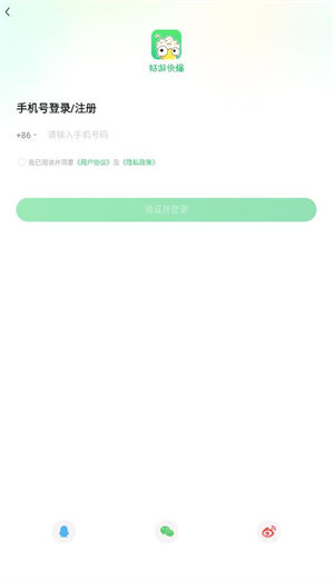 3、然后输入手机号点击验证并登录,之后输入获得的验证码就可以注册登录了。