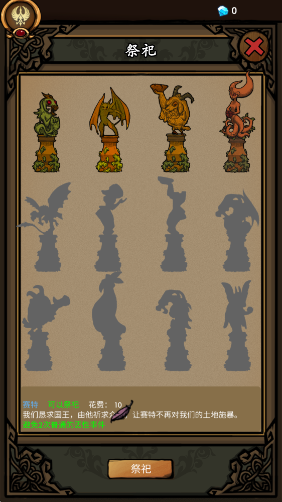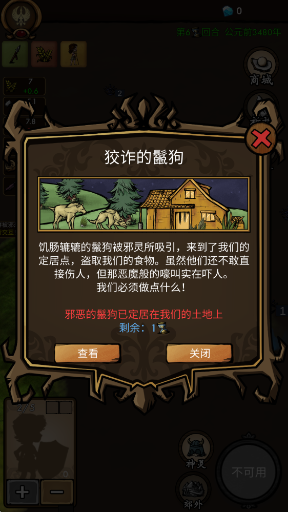 2、在发展进程中我们会遭遇大量随机事件,可能是天灾、人祸,亦或是神明的旨意!为了部落的存续与发展,请慎重做出每一个选择。