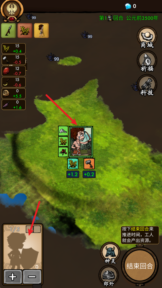 4、通过耕种我们可以去获得资源,加入更多的工人。