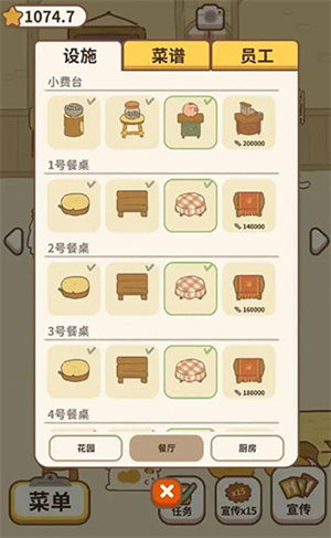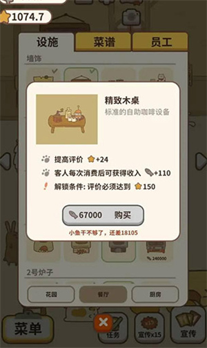 2、餐厅内的设施可进行持续升级,等级越高,不仅功能会更完善,外观也会愈发美观。
