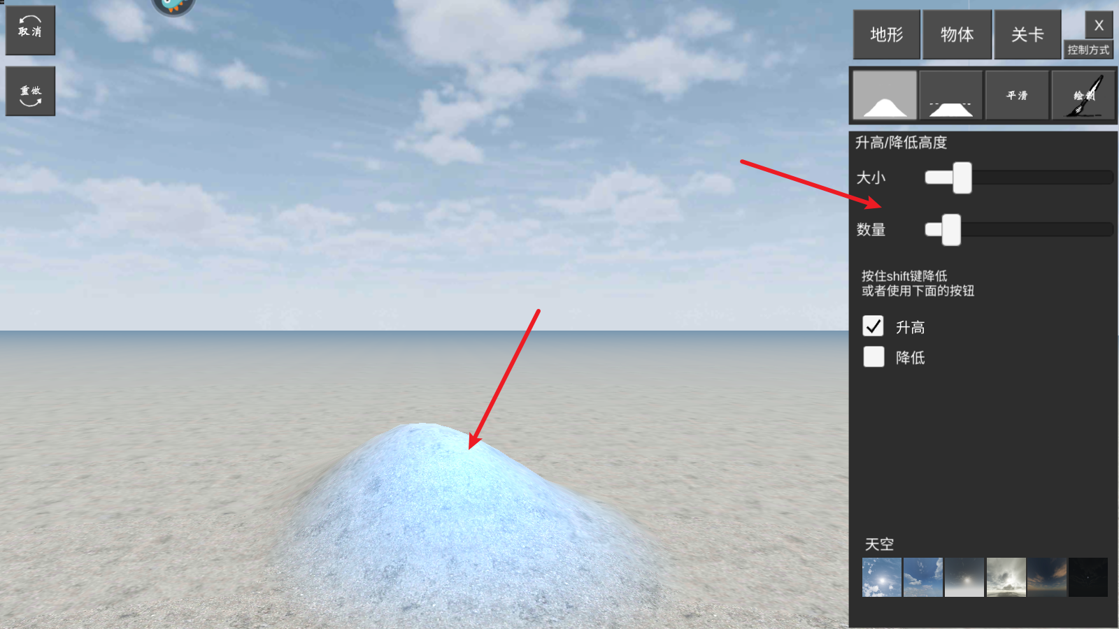 2接下来我们可以先创建一个基础地形,再把天空设置妥当。