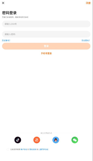2、接着在“我的”界面点击登录按钮,输入对应的账号和密码。目前登录方式共有六种,具体包括手机号登录、账号密码登录、抖音登录、快手登录、微信登录以及QQ登录。