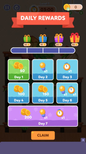 1启动游戏后会自动跳出签到页面,点击该页面底部的“claim”按钮,就能不花费任何成本获取当日签到对应的金币奖励。