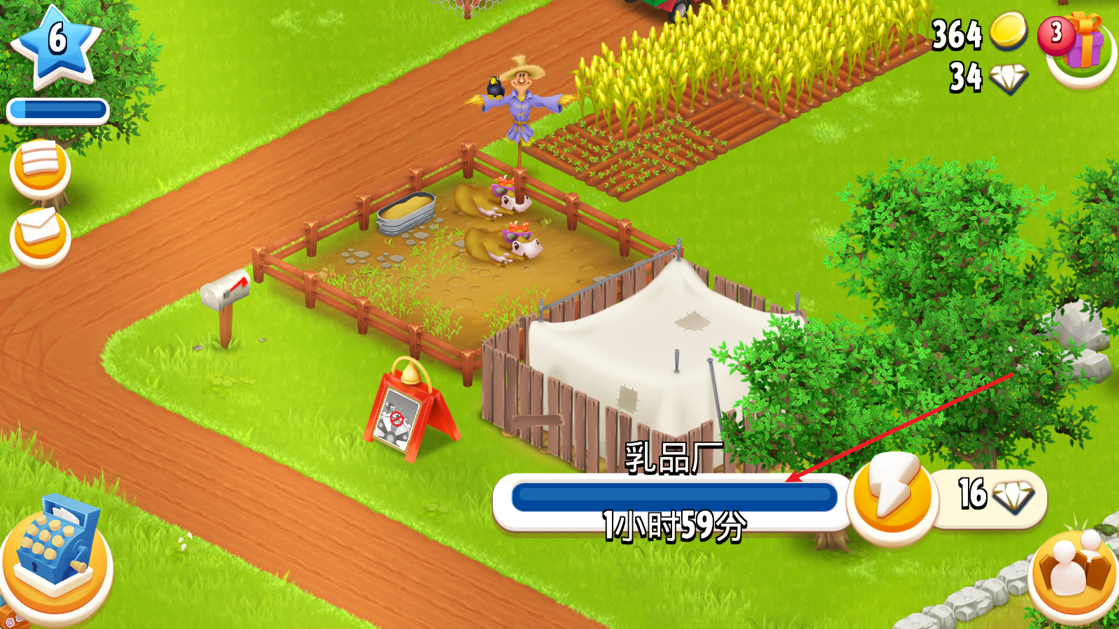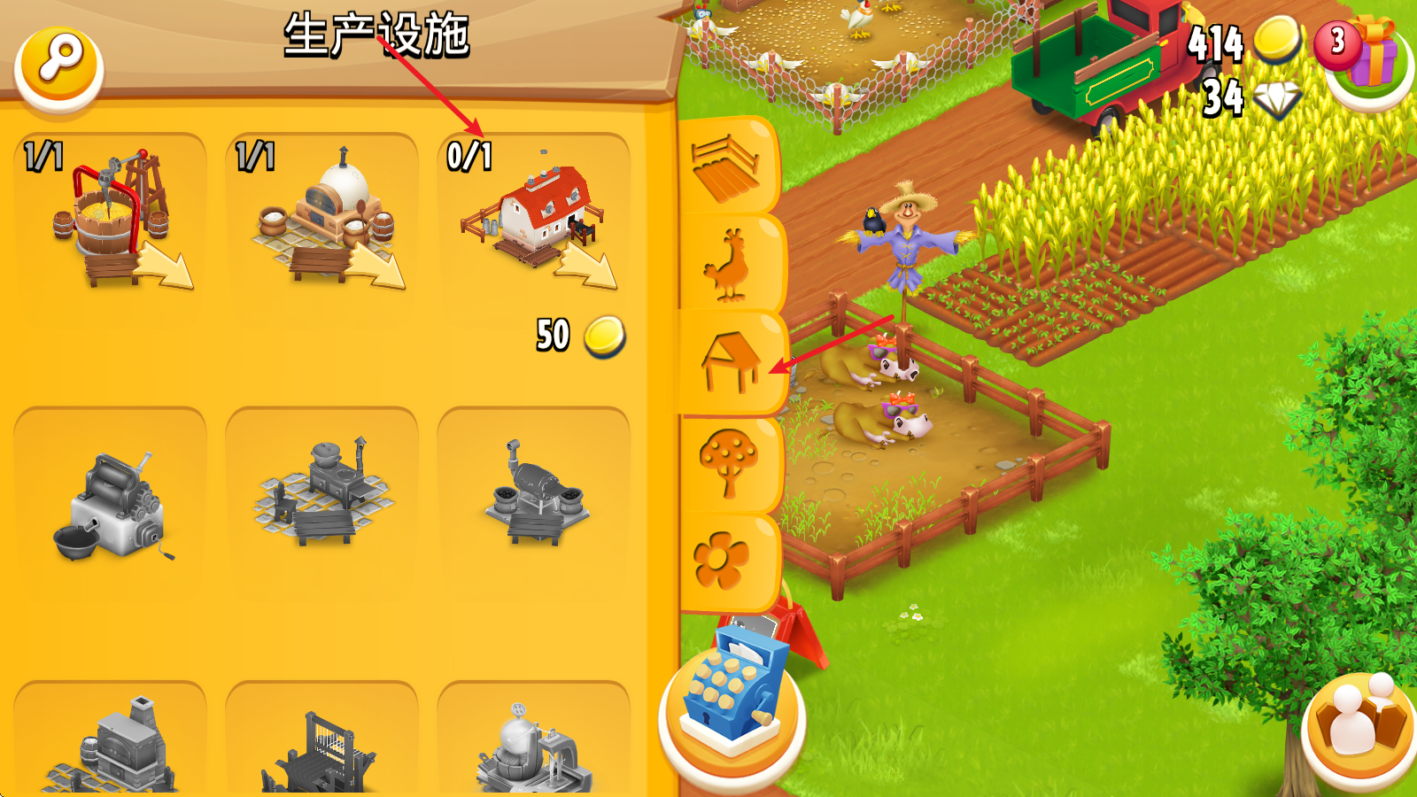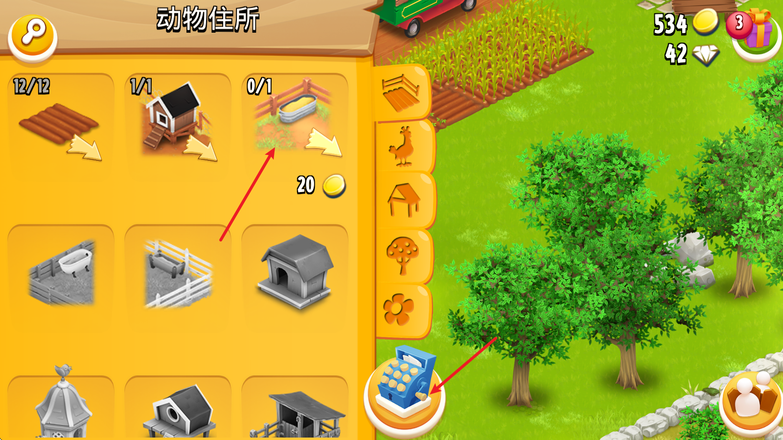 4、有了一定的作物基础后,再来看看牧场,牧场中的动物需要饲料喂养,点击旁边的饲料厂即可生产。