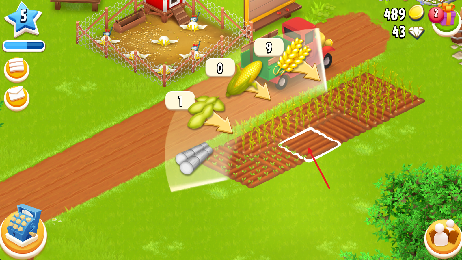 1、游戏中玩家可以自由的经营小镇,从农场、牧场等开始,例如这里点击空地即可种下作物。
