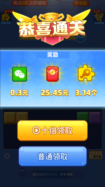 4、通过消除成功达到关卡的目标分数后,我们就能顺利过关并获得相应奖励了。