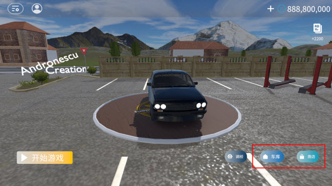 1、启动游戏后,在主界面能找到“车库”与“商店”两个选项。进入车库可查看自己目前持有的车辆,而在商店中则能够选购新的车辆。