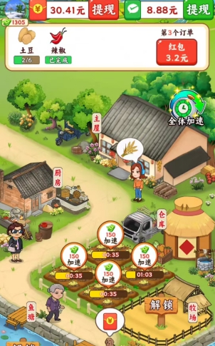 幸福满园,一款种植经营游戏,玩家将通过种植不同的蔬菜来完成订单任务,在幸福满园里有很多的任务可以选择,丰富的模式会给你带来不同的体验,各种各样的玩法会给你新的体验,更多有趣的模式可以给你新的乐趣,不断完成更多挑战来领取丰富奖励吧。