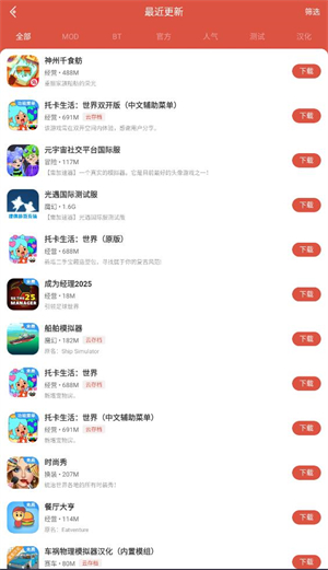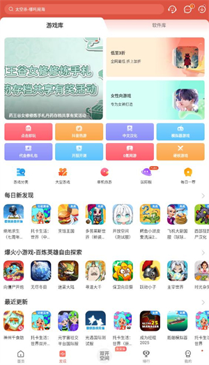3、在发现页面点击“最近更新”选项,即可查看近期更新的游戏内容。
