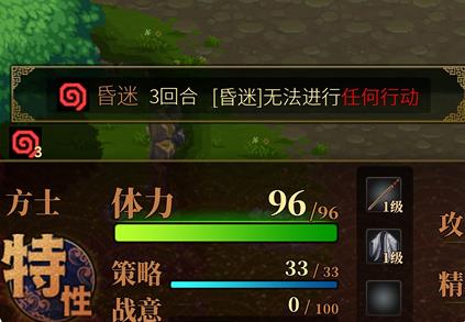 5、因剧情、策略、特性在战斗中武将会获得正面/负面状态,可控制武将不触发剧情避免异常状态。状态在本次关卡内有效,结束后清除状态。所有状态持续回合数为3。时运会影响状态持续回合数,时运越高持续时间越长,负面属性持续越短。部分特性也会对状态持续时间造成影响。负面状态可等待自动或使用道具、策略解除。