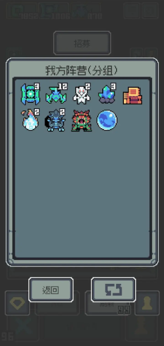 3、经典2D像素风,在单机独游中很常见。画面结构简单,重点区域突出,UI品质较好,魔王及兵种特点鲜明,辨识度比较高,也有白蓝紫橙的品级设定。