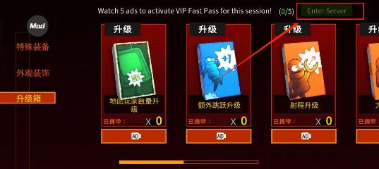 2、因游戏服务器承载量有限,进入联机房间时可能会跳转至商城页面,此时请点击任意五件商品,之后点击右上角的绿色“ENTER SERVER”按钮就能进入游戏(若操作失败可再次尝试)。