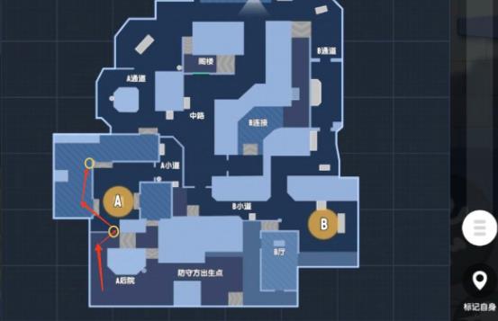 9、防守方守A直接从A后院来到这个木墙卡视角观察A点。有人过来或者下包时直接偷袭。或者继续往前来到A点左侧屋里这块墙角卡视角架住前方路口敌人。守B直接从防守方出生点右侧走来到楼梯口趴着,守住B通道冲过来和从B连接摸到B小道再过来的人。或者从B厅穿过去来到B点上方木墙蹲人。这里视野开阔可以清楚观察B点整个区域,缺点是木墙子弹可以穿透。