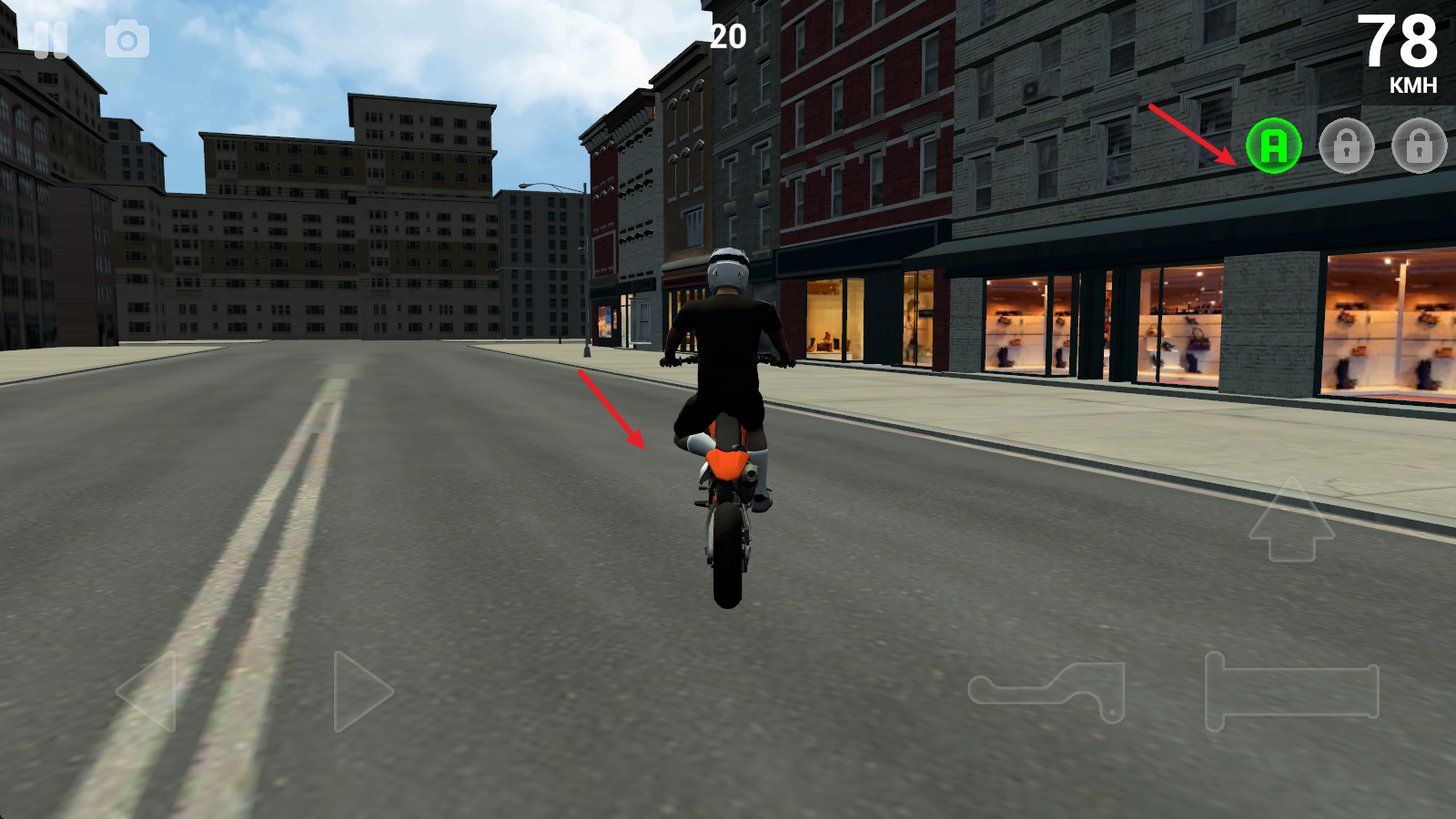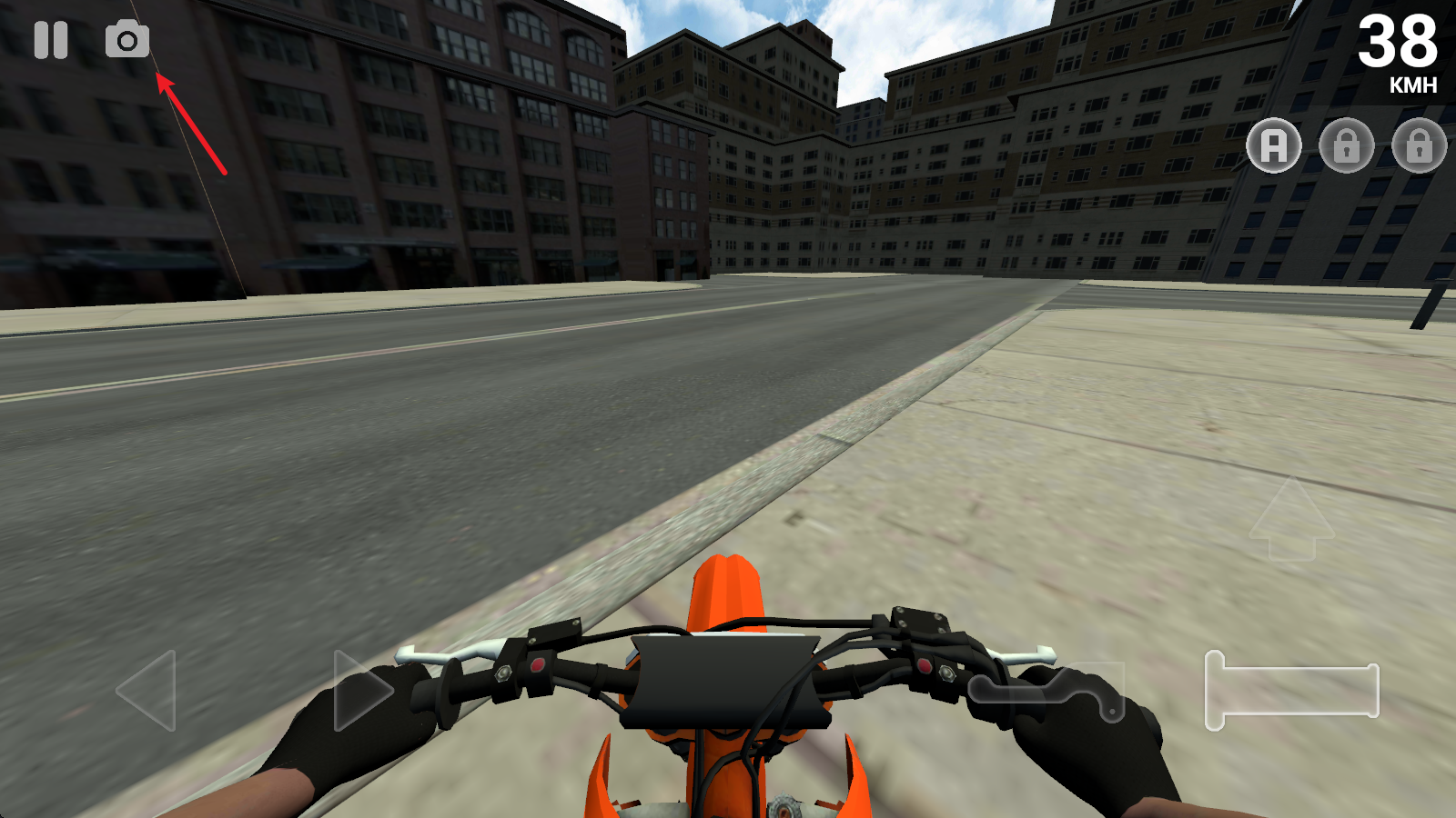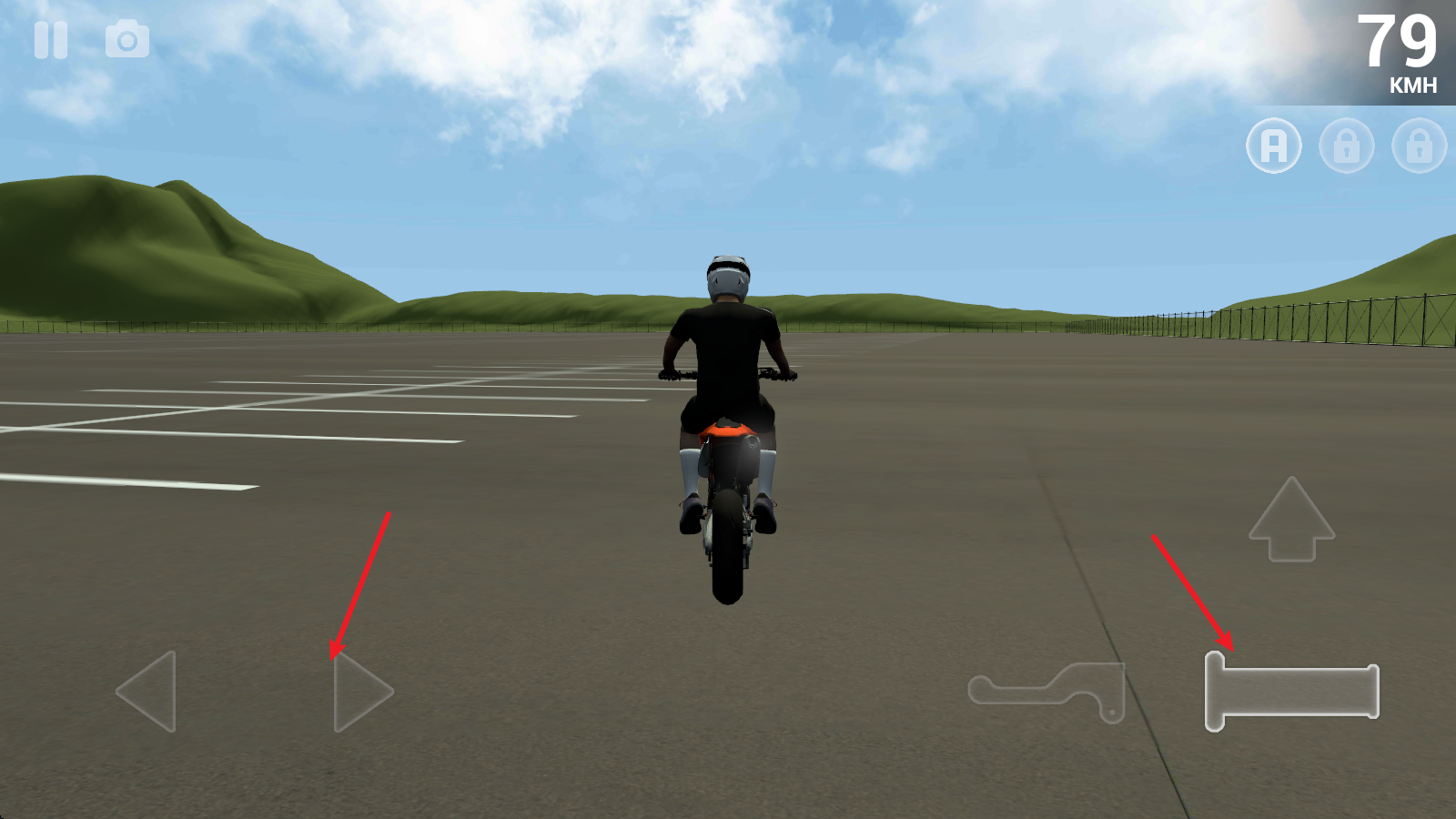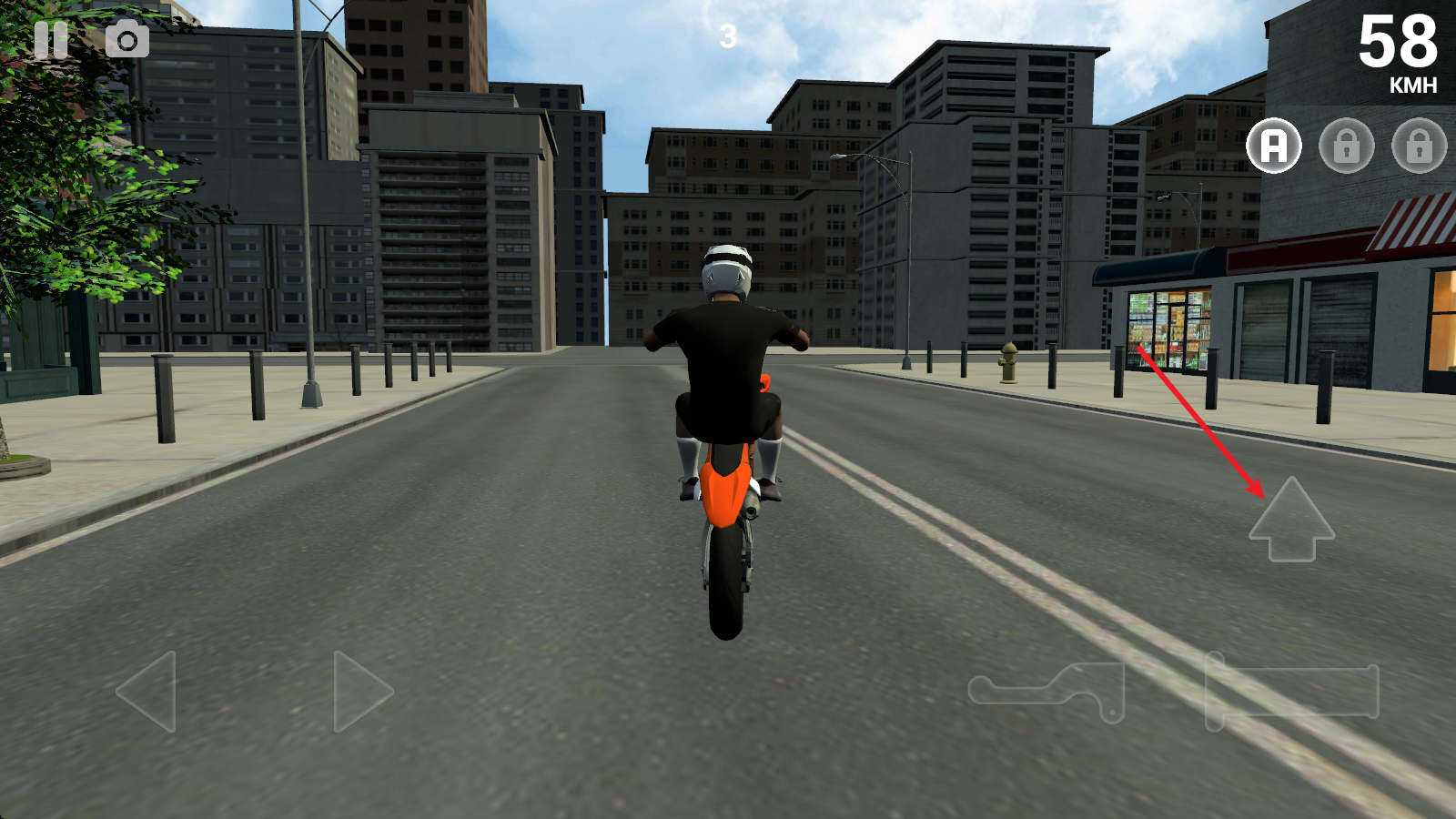 3、在行进过程中,点击右侧的上箭头即可翘起车头。
