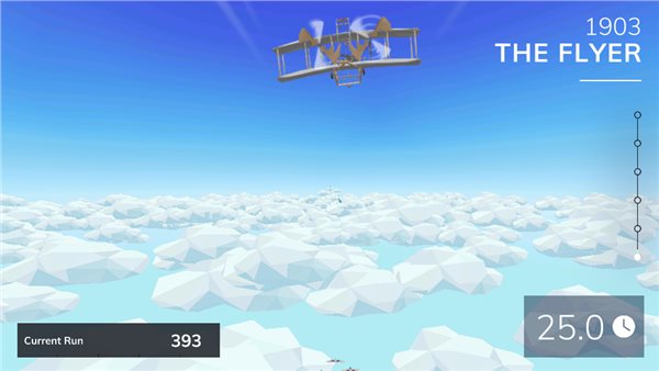 《穿越时空的翅膀》是一款趣味十足的高空飞行主题休闲益智游戏,玩法十分简单:你将从莱特兄弟发明的第一架飞机开启游戏,驾驶各式各样不同的飞机,亲身感受航空发展的宏伟历史。在飞行过程中,收集空中的计时器以获取更多时间,从而冲击更高分数,不断挑战自我极限吧!
